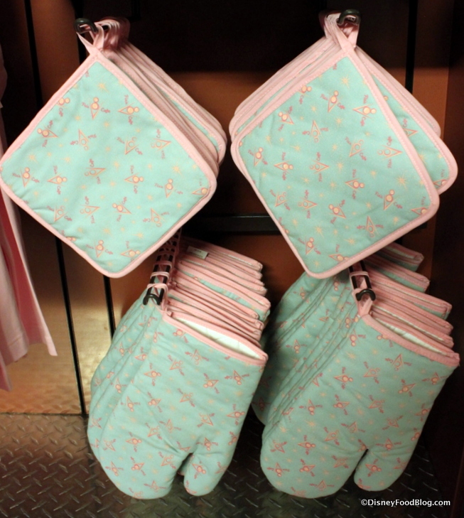 The Flo’s V-8 Cafe logo is all over these oven mitts and potholders.