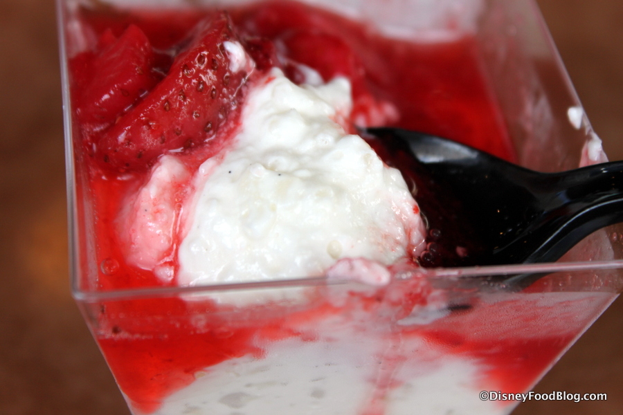 Now we definitely see a change from the old standby in my next item: Rice Cream. The basic gist remains the same: the bright tang of the strawberries and glaze on top is mellowed by a creamy mildly-vanilla rice pudding base.