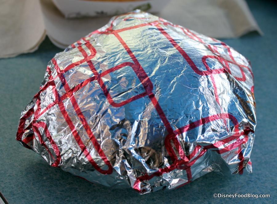 I started with the headliner item: the Angus 1/3 Pound BBQ Bacon Cheeseburger. It comes to you all wrapped up in a paper and foil wrapper.