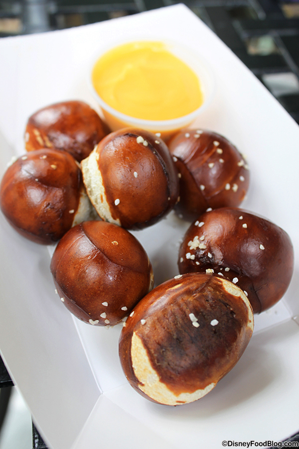 Next up, these perfect little pretzel bites. Also served with plastic cheese, these were hard to bite into, but were soft once you got through that thick exterior. Not as good as the nachos, for sure, but a decent treat. They’re very similar to the pretzel bites you’ll get over at Cozy Cone.