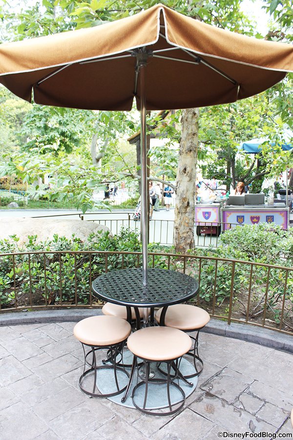 This hidden gem is a great place to grab a very quick bite in Disneyland. It’s tiny and doesn’t have much seating, but there are a couple of menu items worth getting, and you may even see a show! More on that later… .