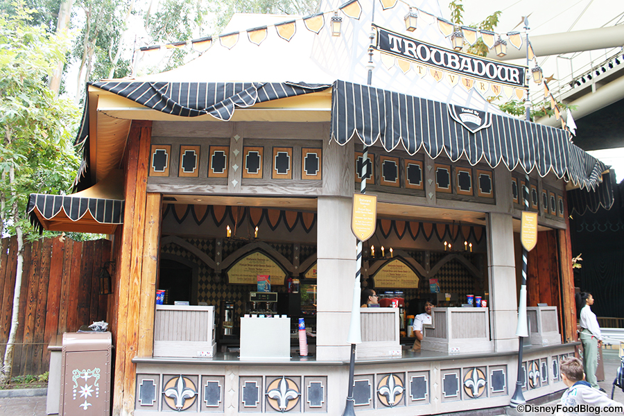 In case you’re not sure where Troubadour Tavern is located (it’s kind of hidden, and many folks would walk right by), you’ll find it toward the back of the park near it’s a small world and Mickey’s Toon Town.