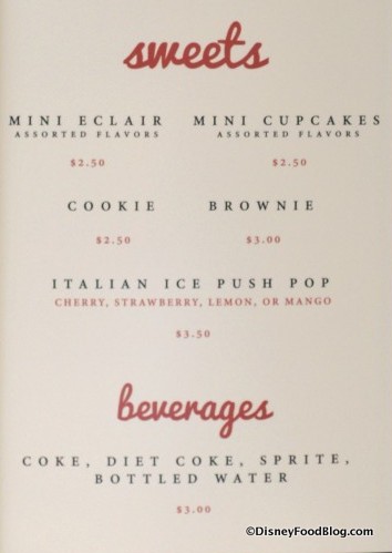No vegetarian options on these menus. C’mon, Disney, get with the times! People like to eat healthier these days!