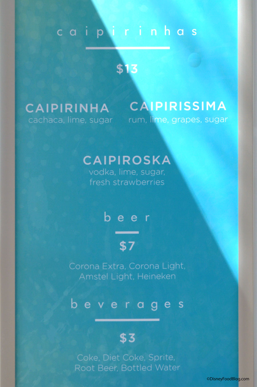 FYI, only Caipirinhas are made with cachaca, limes, and sugar. Caipirissimas are made with rum instead of cachaca. Caipiroskas are made with vodka instead of cachaca and are what the Brazilian wealthy used to drink before the surge to make cachaca the national spirit. I believe these are currently the only such cocktails on property.