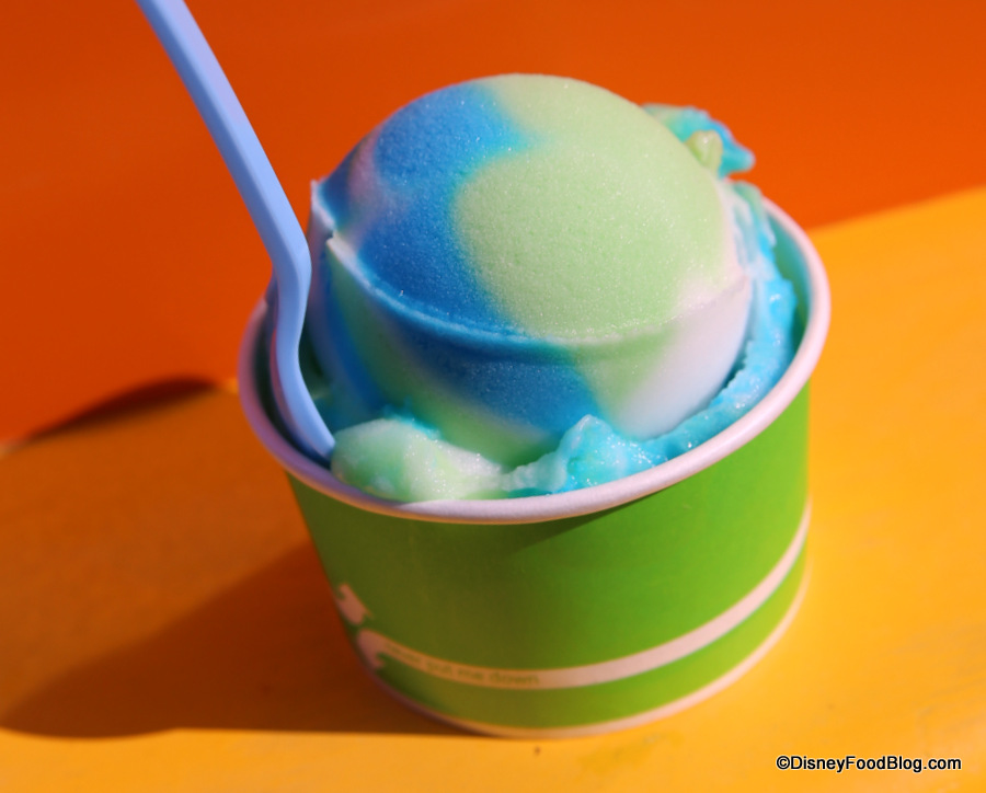 My go-to for a cold treat during a scorcher in Downtown Disney is typically a good ol’ Raspberry Lemonade Slush (did you know you can grab one outside the parks at Downtown Disney’s Marketplace Snacks)? That is, if I’m not too tempted by the newer offerings at Dockside Margaritas these days. But this little scoop really hit the spot for a small bit of refreshment as I went on my way around Downtown Disney, and I’ll definitely keep it in mind as an option to add to my list in the future.