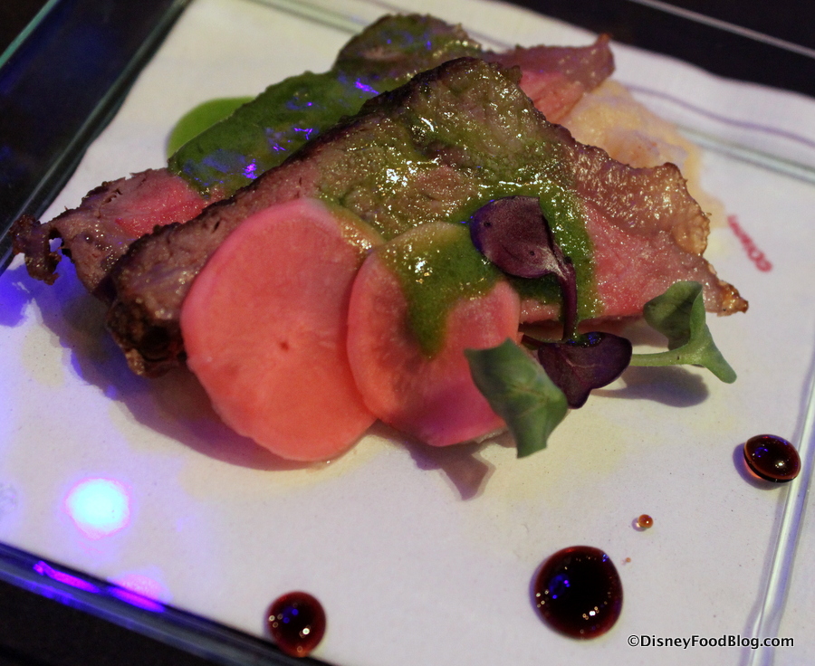 The New York Strip, served with Parsnip Silk, Balsamic Glaze, and Arugula Foam is sure to get raves. (I’ll be requesting mine foam-less, though.)