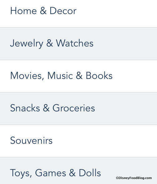But Disney FOOD plays a pretty major role, too! Do you see it? The “Snacks and Groceries” option in the categories below?