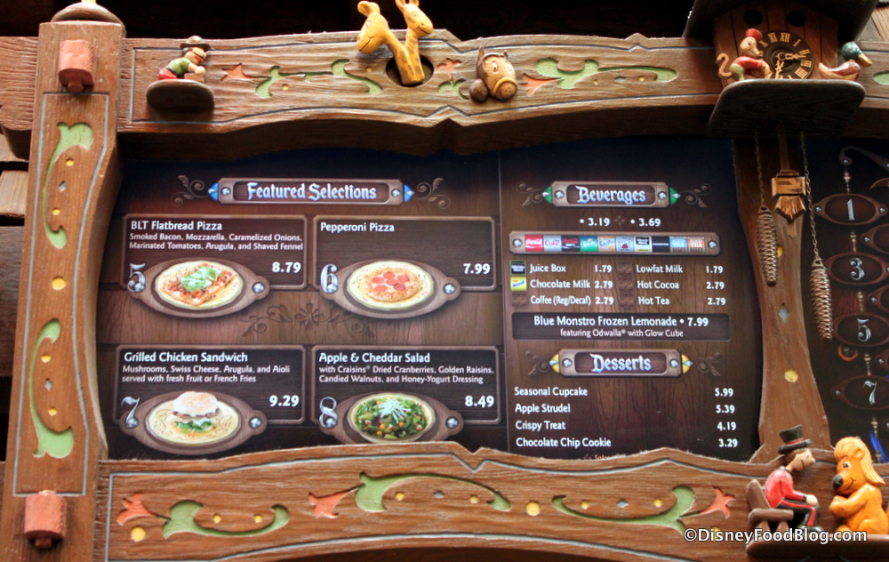One of the biggest differences that you’ll notice between Pinocchio Village Haus in Walt Disney World and Village Haus in Disneyland is the menu. While the menu in the ‘World is strictly Italian-influenced, Disneyland’s Village Haus hosts a menu that boasts both Italian and German tastes befitting the Bavarian style setting of the Italian story.