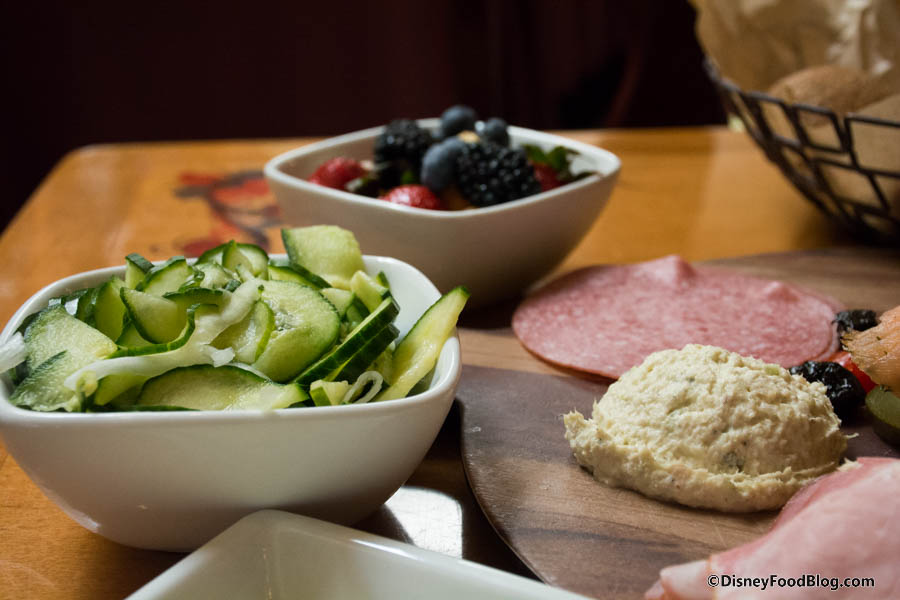 While I like the convenience of family style service at a character dining location, I think the cost of the cold buffet is too great. The variety offered on the buffet is huge. And the asparagus has always been a stand-out side dish. The last time we visited, the variety of the buffet and the ability to sample new things really stood out as the best part of the meal food-wise. Of course the food has always been secondary to the princesses…