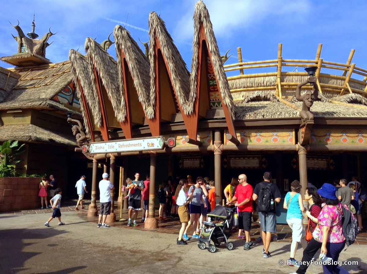 Aloha Isle has seen its fair share of change in the past year. Not only did it switch locations with Sunshine Tree Terrace to help make way for the upcoming Jungle Cruise-themed Skipper Canteen, but this spot — which previously served up flavor variations of Dole Whip (orange and vanilla, which could be ordered on their own or swirled with the signature pineapple) — currently offers only Pineapple Dole Whip in cup or Float form like its west coast counterpart.