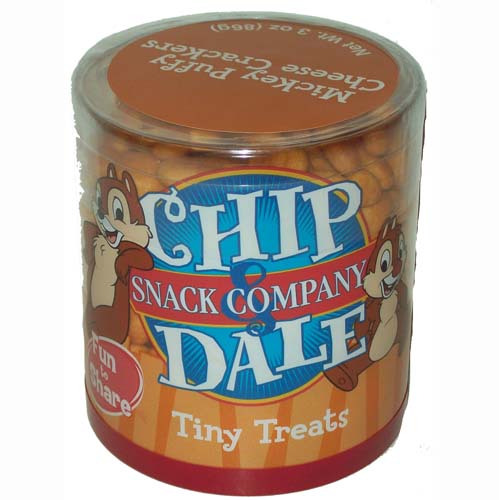 Chip and Dale Snacks include Puffed Cheese Crackers in the shape of Mickey that you’re kids will enjoy. Think fake Goldfish that don’t taste as good as real goldfish. These could post a choking hazard for a sub-two-year-old, so be sure that you’ve tested out goldfish on them first at home.