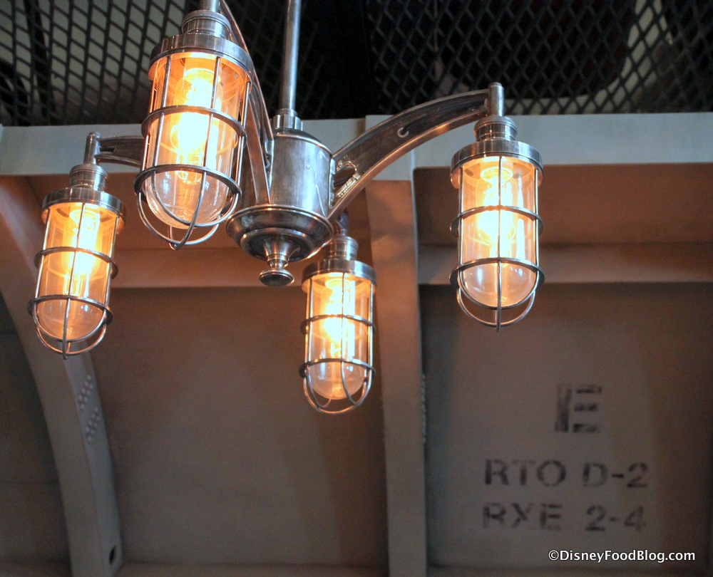 As promised when Disney first revealed plans for the Hangar Bar, Jock Lindsey’s beloved pet snake, Reggie, certainly has a major influence in the bar’s story (much to Indiana’s chagrin, no doubt). The large, glowing canister on the bar contains the makings of Reggie’s Revenge. (FYI — this one is just for looks — they have a keg below the bar that holds the actual drink you’ll be served.)
