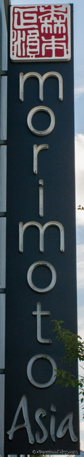 Morimoto Asia is in The Landing of Disney Springs (the front of the building is actually facing construction for the time being). Your nearest dining landmark is Raglan Road. If you walk towards the front of Raglan, then you’re on the right track and you’ll spot the large sign on the side of the building.