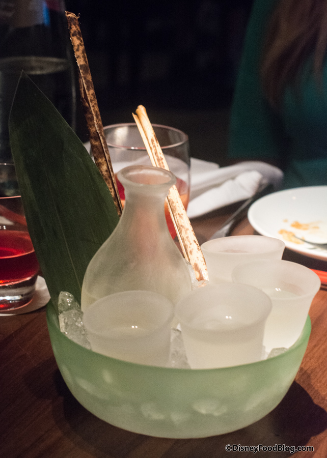 The sake was brought to us in a bowl filled with ice, and the waiter slowly poured the sake into the chilled sake cups and then set it down on the table for everyone to take (generally, four people can get two pours each, which is what we received). The sake was served cold, so for others who may be more used to hot sake — like me — you may want to make note of this. But overall, we found the Junmai, Ishikawa to be an incredibly smooth sake, offering sweet notes on the back of the throat and no burn from the alcohol.