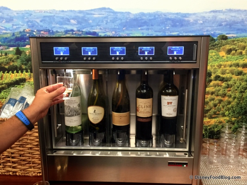 Pay at the Wine Shop register for either a $5 sample or an $8 sample, and you’re given a glass. Take it to the Cast Member and he or she will assist you with the self-serve machines.