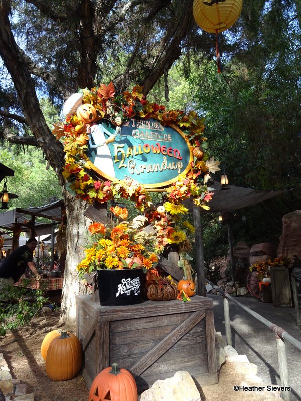 Once your pager buzzes, it’s time to head to the Halloween Round Up sign where a cast member will greet you and show you to your table.