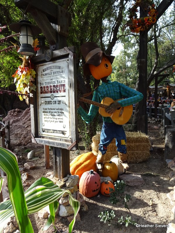 One of the fun things about Big Thunder is that the decor changes seasonally. It’s currently decorated as the “Halloween Round Up.” And when I say decorated, I mean decorated. They pull out all of the stops, everything from the table coverings to each and every flower scream Halloween! This guy greets you at the entrance.