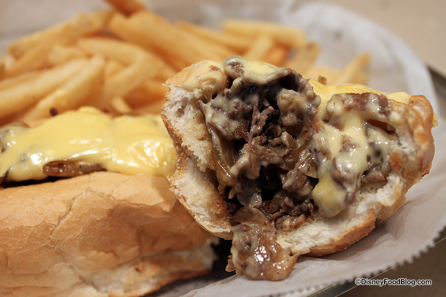 You’ll find the Philly Cheesesteak under the Fountain Features. It’s prepared like a good ol’ classic Philly Cheesesteak with sliced ribeye and sautéed onions and mushrooms. It can be ordered “Wit or Wit-Out” Cheese Whiz. (Umm… like going “Wit-Out” is even an option 😉 ). It’s the only sandwich on the menu served with French Fries (though you can upgrade to fries from the standard chips with the other sandwiches).