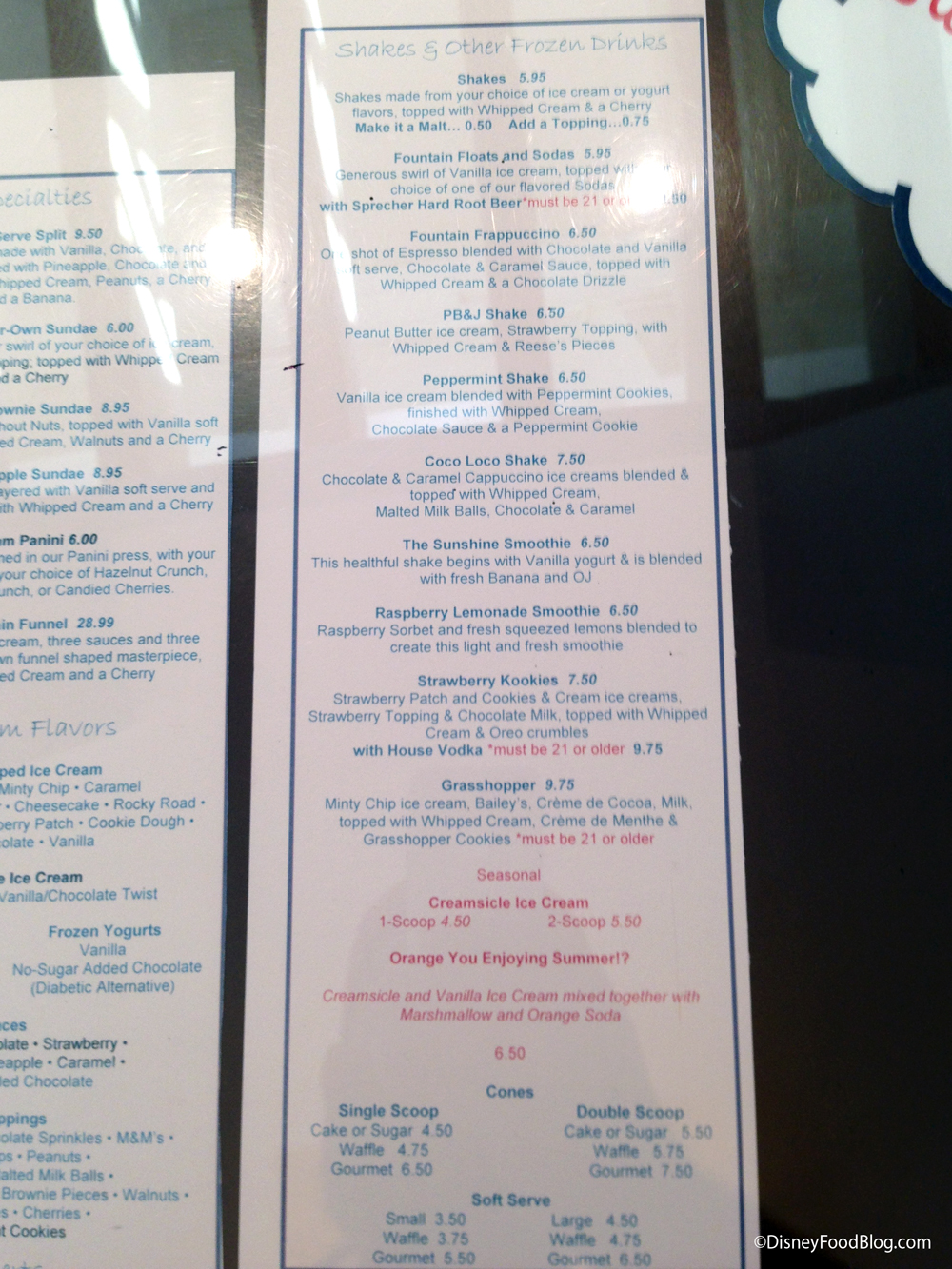 Almost. 😉 Seriously, even if you are after a full meal at The Fountain, do yourself a flavor (ha!) and please save some room! You’ll definitely want to take some time to peruse the menu, divvied up into Ice Cream Specialties, as well as Shakes and Frozen Drinks.