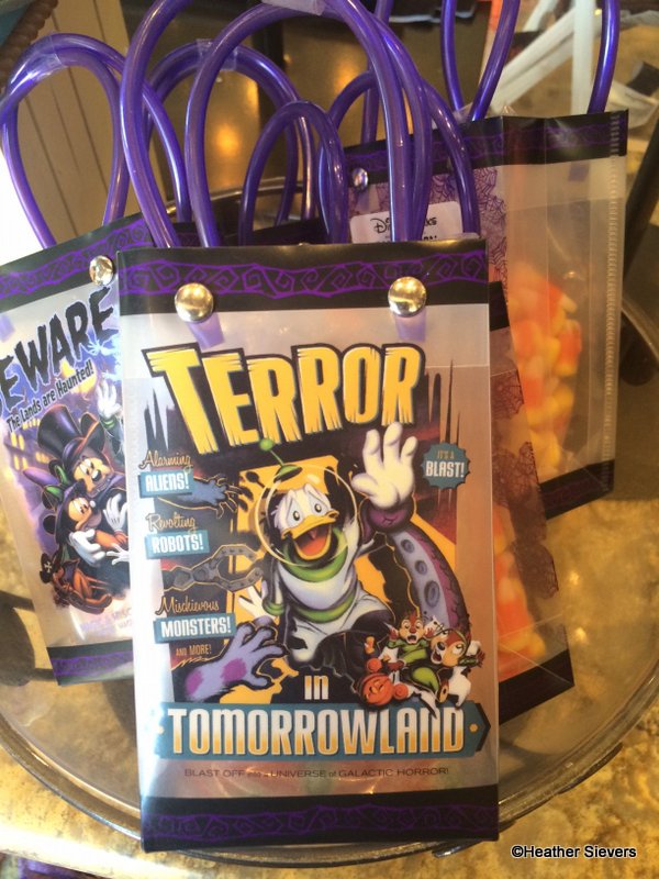 Each candy bag costs $6.95. Prices have gone up a bit over the past few years, but this is the first time a “souvenir” bag has been included as well. The bags are made of a thick plastic that most definitely could be used for decor at home. I think it would be adorable to put some “Halloween” type silk flowers in them and turn them into spooky little Halloween vases/table decor.
