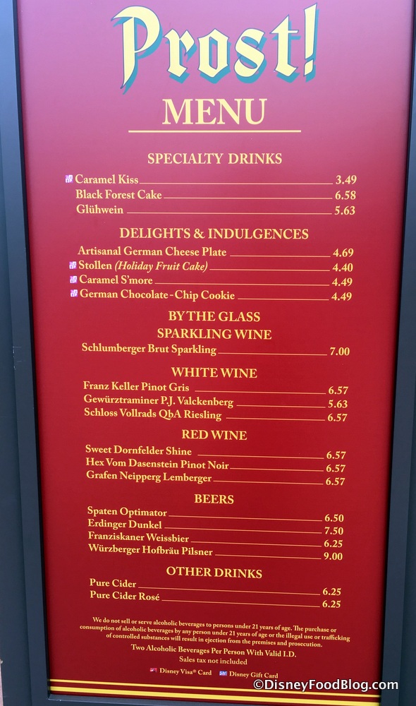 Before or after you enjoy listening to Helga share her country’s traditions in the Germany Pavilion (with a little help from her favorite Nutcracker), you should really stop by the Prost! kiosk-stand-Christkindlmarkt-thingy to check out the festive beverages.