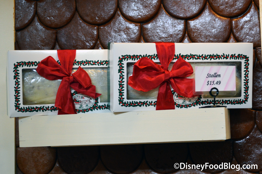 At just about every display you’ll find full loaves of Stollen — a traditional German fruit bread covered in sugar.