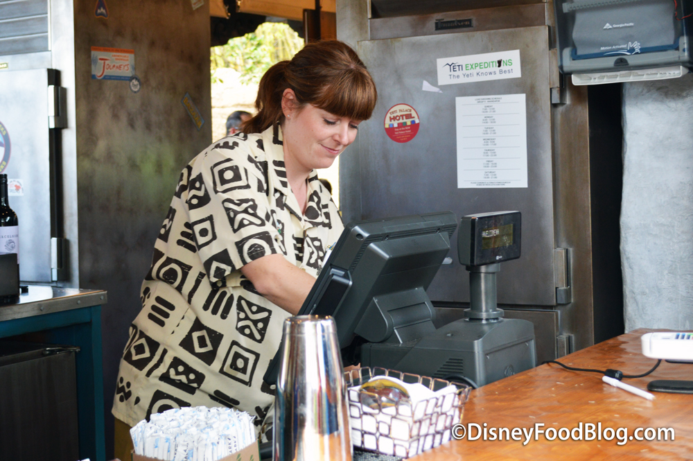 It’s a simple walk-up counter setup with drinks (Thirsty River Bar) on one side, and food (Trek Snacks) on the other. Still, because we’ve learned to expect nothing less from Animal Kingdom, we were keen to spy a few of those beautiful and often intricate details that are the park’s signature.
