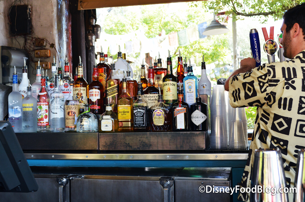 Looking back, maybe the teeny, random pop-up bar that was often spotted in this same general area was something of a test for a more permanent bar in this setting. Still, though a more regular operation, Thirsty River doesn’t offer the same sit-and-stay-awhile vibe of the Dawa Bar in Animal Kingdom’s Africa. It’s more of a sip-and-stroll experience since there’s no seating to speak of.