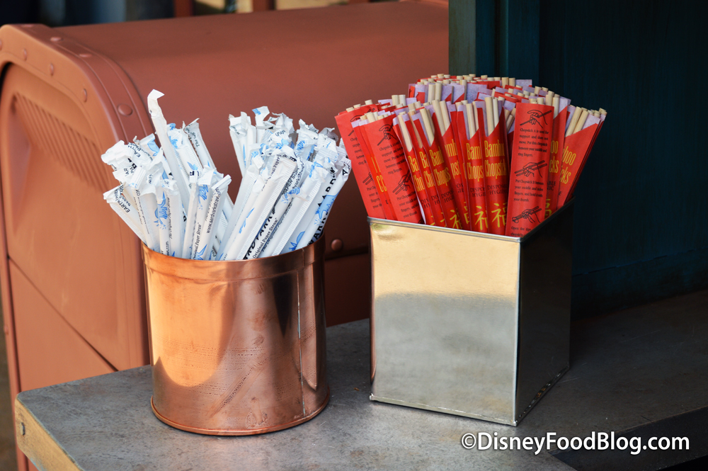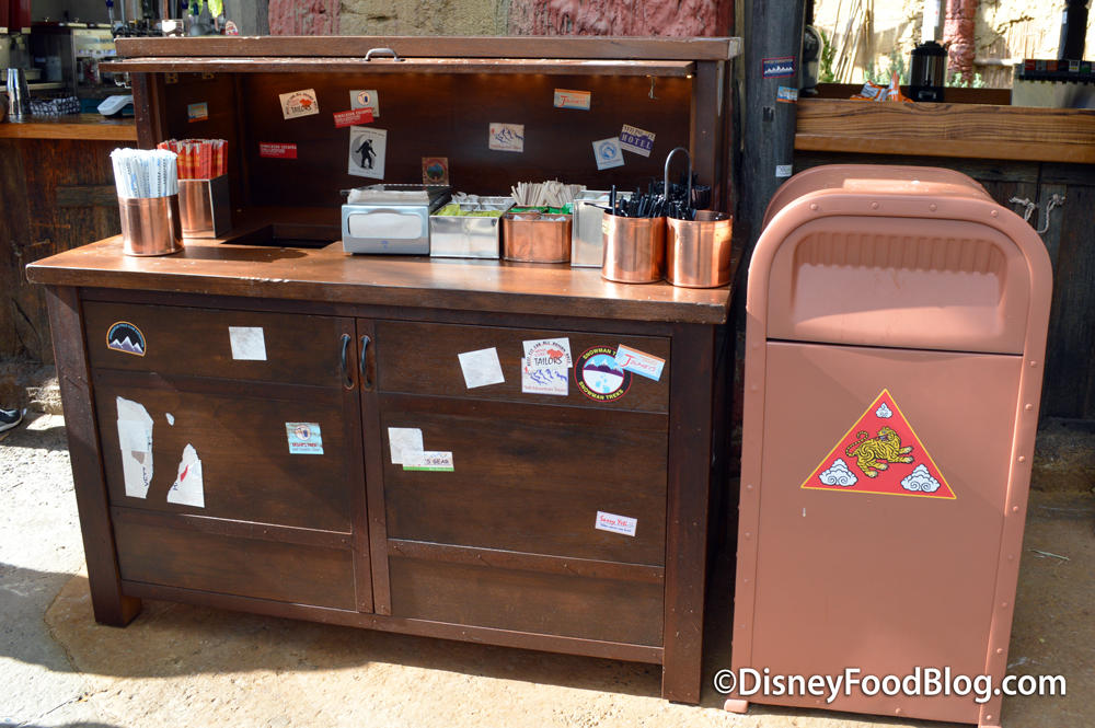 Small, wonderfully weathered-looking condiment stations can be found at each side of the new spot, complete with those trademark Animal Kingdom paper straws and chopsticks.