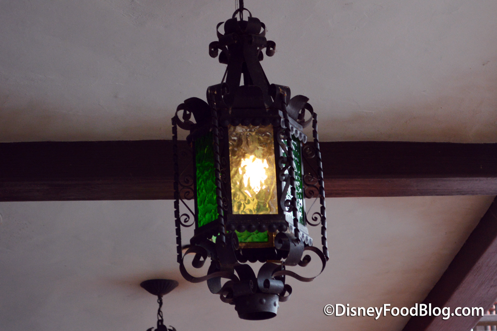 The beamed ceilings are decorated with colorful glass lanterns, but overall the lighting is dimmed. We understand this is the preferred style for the pirate clientele.