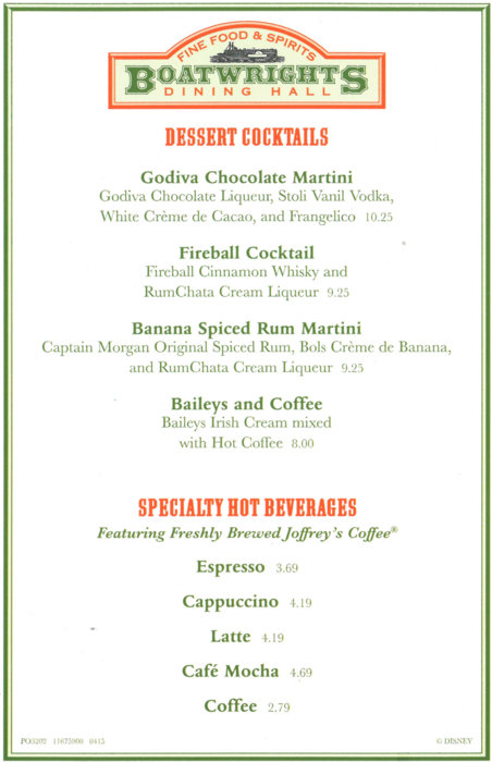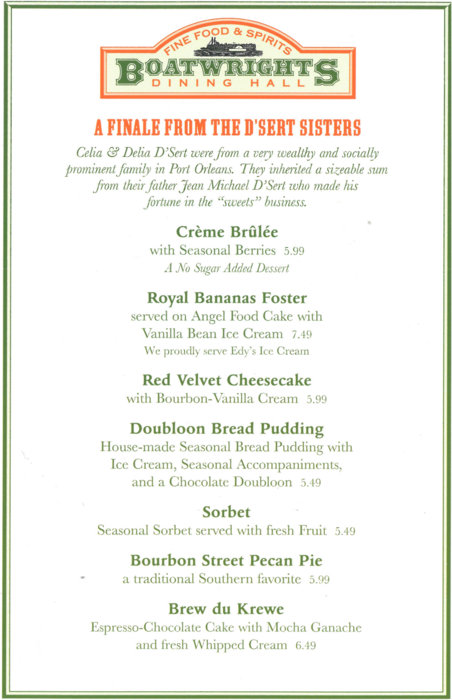 Here is the Boatwright’s menu.