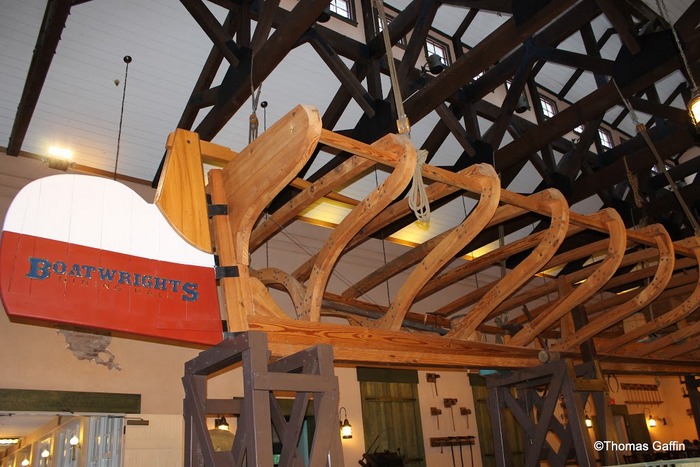 The boat frame and tools area is bright, large, and impressive with ample space between tables for private conversations and interaction. Although this area features soaring ceilings, the noise level never became a nuisance.