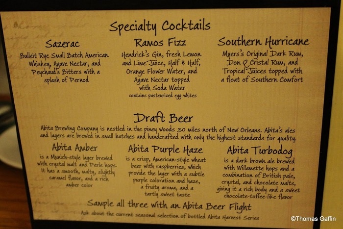 Boatwright’s offers a full bar as well, and a specialty cocktails menu. Our friends chose the Abita Amber and traditional strawberry daiquiri. Both were reported as delicious.