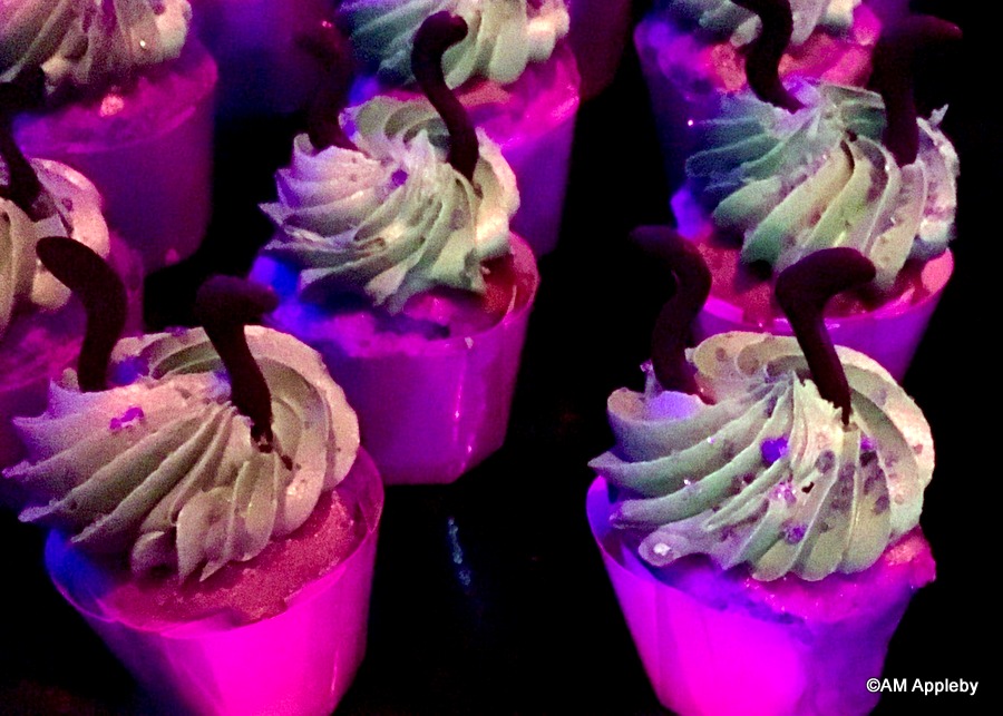 Our favorite dessert was the Queen of Hearts Red Velvet Cupcake. Scrumptious! But the most unique dessert, scrummy as well, was Maleficent’s Cheesecake Pushup with Dark Cherry Gel. Her Purple Angel Food Cupcake was simple and light. The Evil Queen’s Green and Red Truffle was a bite-sized melt-in-your-mouth treat!