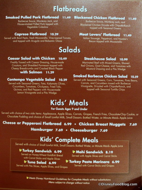 A selection of Flatbreads, Salads, and Kids’ Meals round out the offerings.