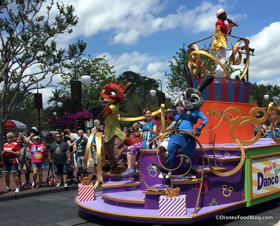 If you can’t get enough of Disney’s latest hit, Zootopia, be sure to keep an eye out for Nick Wilde and Judy Hopps floating by in the Move It! Shake It! Dance & Play It! Street Party.