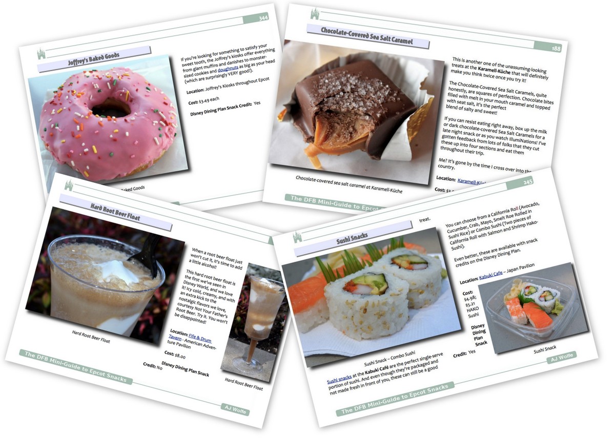 Disney World veterans and those new to Epcot will appreciate knowing what they are getting BEFORE using a precious snack credit or spending their limited vacation dollars. Whether you want sweet, salty, crunchy, healthy, or all of the above, The DFB Guide to Epcot Snacks e-Book tells you where to find a snack to match your craving!
