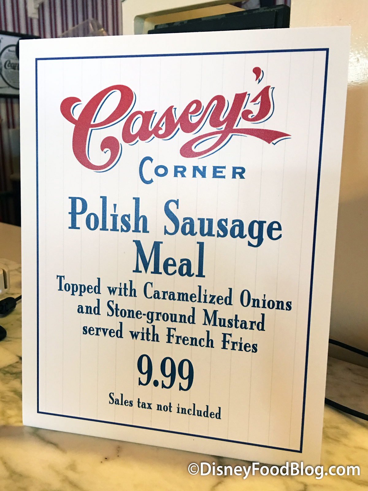 Unfortunately, from what the Cast Members told me, the Polish Sausage is being phased out. So lovers of the specialty entree may want to make their way over to Casey’s before they are gone for good!