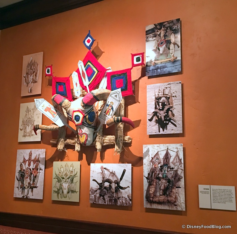 You’ll also find shadow boxes with artwork from Imagineers that predates the park opening. Much of it comes from sketches that were created during the research process for Animal Kingdom.