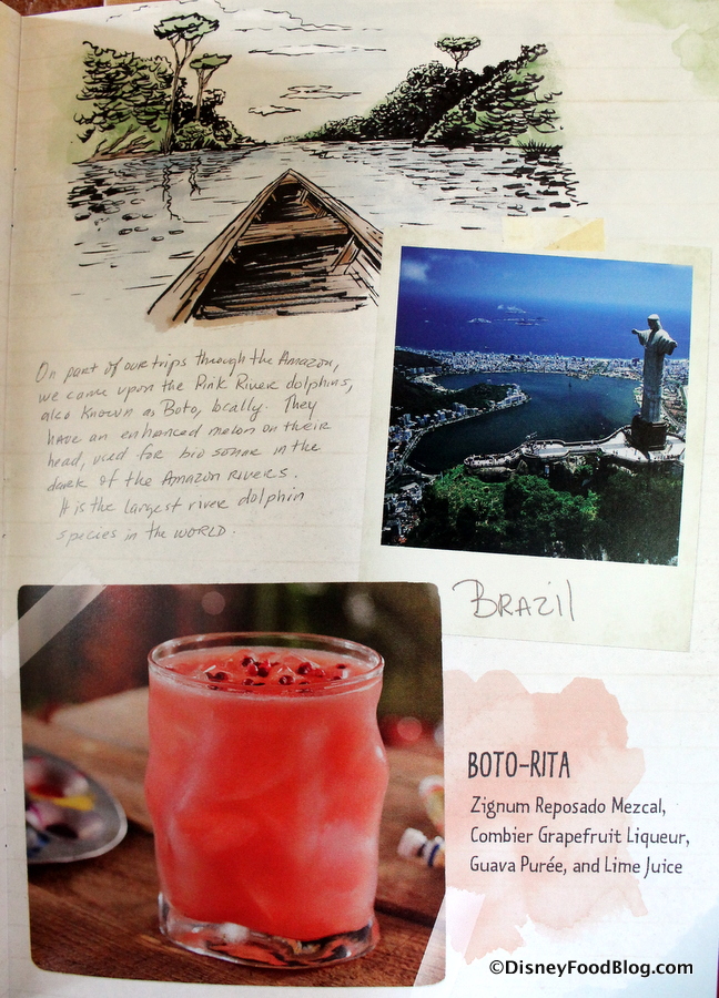 But it’s the drinks, of course, that take up the bulk of the menu, surrounded by the aforementioned notes and sketches from the park’s Imagineers. (You could seriously spend a chunk of an afternoon sitting and reading these stories and learning about the inspiration for special spots and attractions all over the park.) We’ll kick off our menu tour in Africa, with the Lamu Libation.