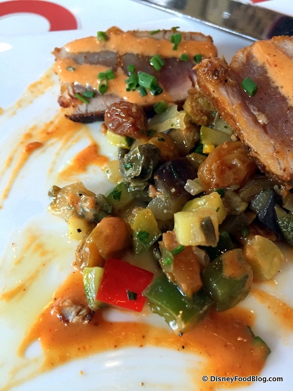 Our next course was Spicy Tuna with Eggplant, Capers Salad, Zucchini, and Basil Oil. There was nothing that I did not love about this dish!