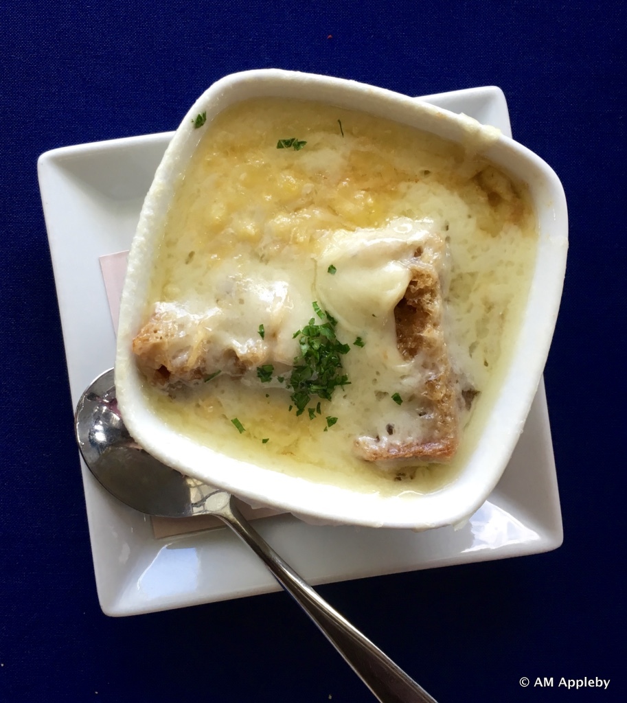 The Onion Soup Gratinée was perhaps the best I’ve had. My daughter ate nearly every bit, savoring the delectable broth and saving the nutty and flavorful Gruyère de Comté, generously melted on the ciabatta croutons, for last.