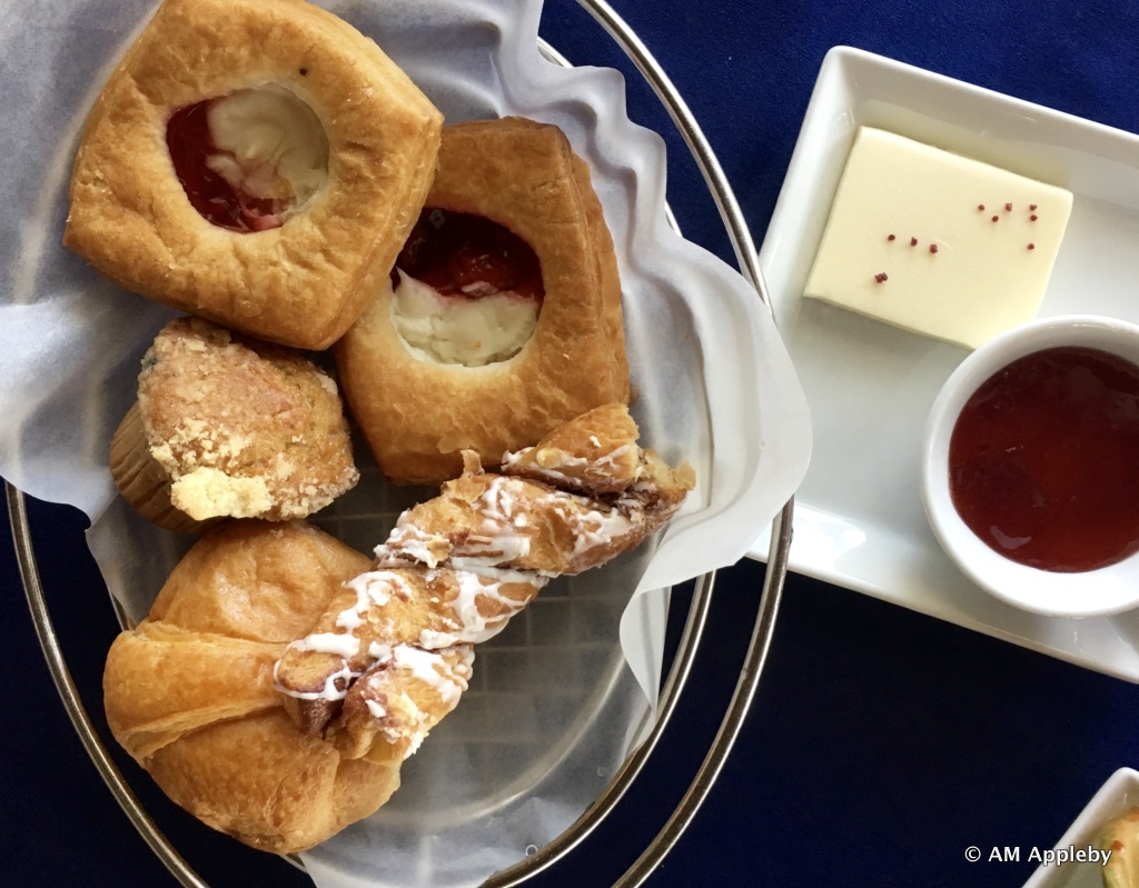 The pastry basket is filled according to the number of guests at the table. Ask for more of the ones you love. (I mentioned towards the end of brunch how much my daughter loved the blueberry muffins and Nelson returned with a box of extras for her.)
