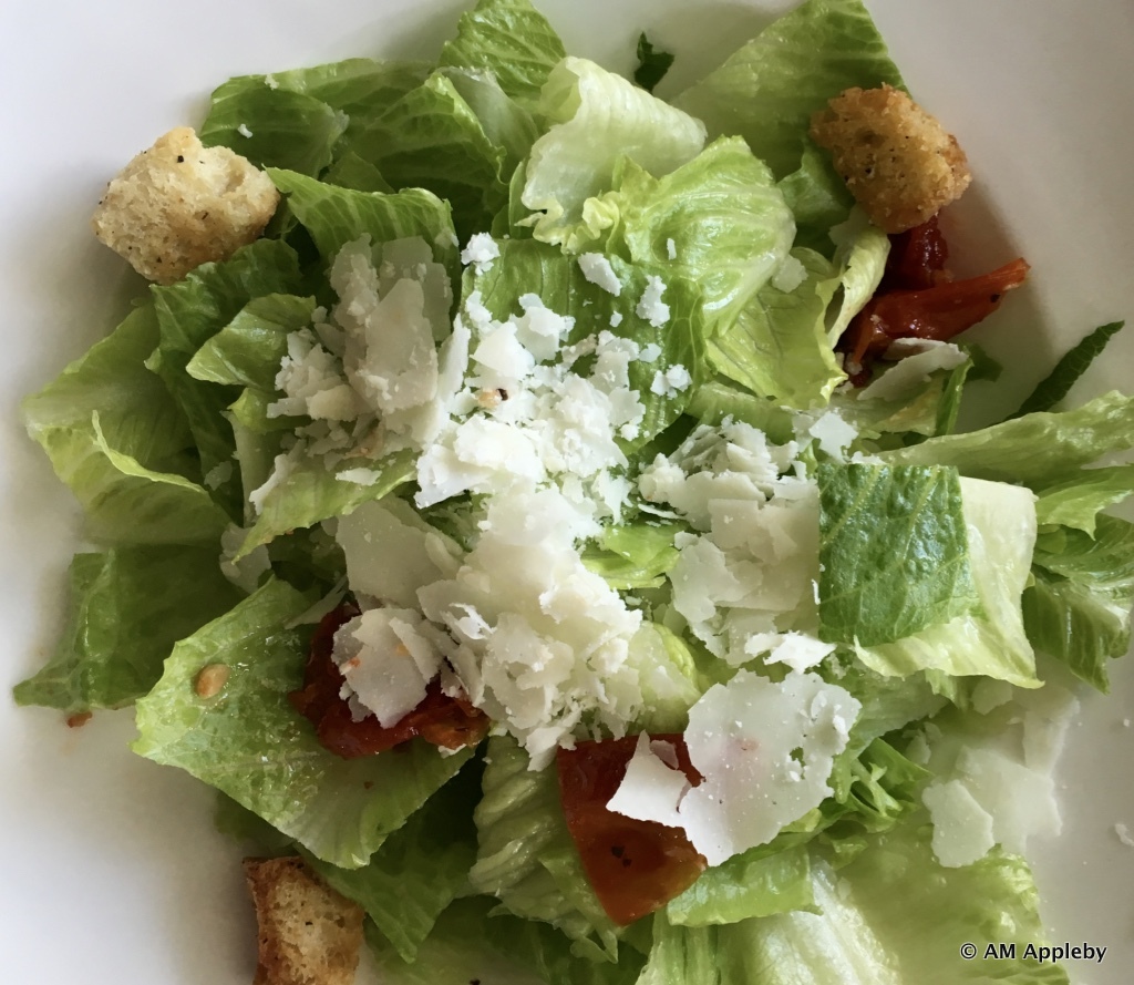 Our appetizers arrived about fifteen minutes after the pastry basket. My Romaine Salad with shaved Pecorino Romano was very fresh and crisp, and the marinated half-dried tomatoes were a welcome accompaniment to this classic salad. I ordered the Caesar dressing on the side and, true to the description, it was creamy and delicious.