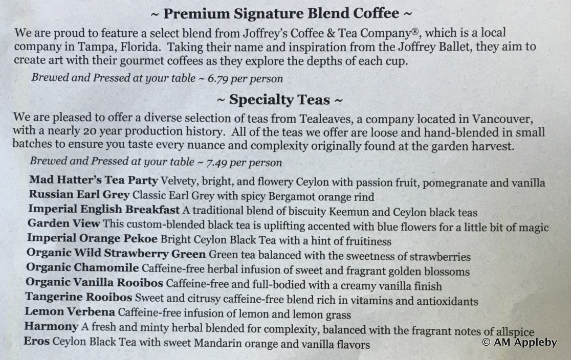 An assortment of teas and other espresso drinks are also available and included in the price.