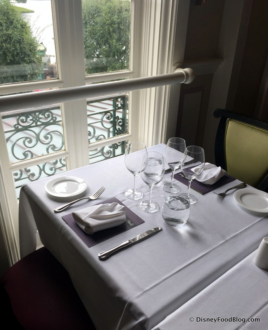 If you haven’t had the chance to dine at Monsieur Paul, you may not be familiar with it. It’s the fine dining option in Epcot’s France Pavilion. You’ll find it by heading back through France as though you’re getting a Macaron Ice Cream Sammie at L’Artisan des Glaces. 🙂 But hang a left before you get to the boutique ice cream shop. Go through the door with the awning, past the hostess stand, and you’ll spy this beautiful art nouveau staircase leading up to the second floor restaurant.
