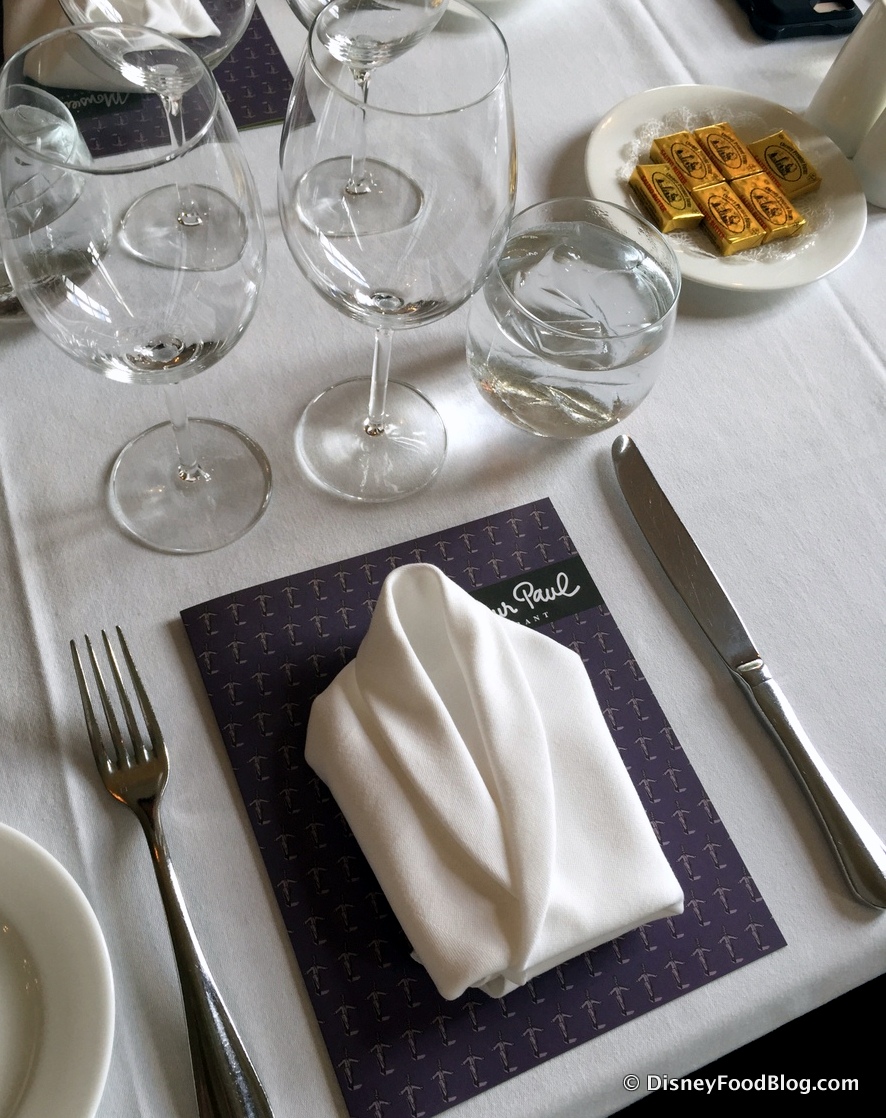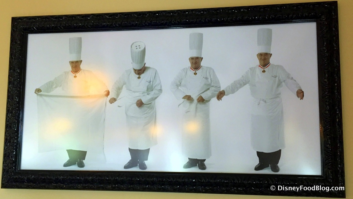 After I was shown to my seat, I had a few minutes before lunch began, so I decided to look around a bit. Monsieur Paul pays homage to Chef Paul Bocuse. Fitting, since he’s one of the original trio of chefs referenced in the France Pavilion. It’s also appropriate because the Bocuse Group runs all of the restaurants in the pavilion.