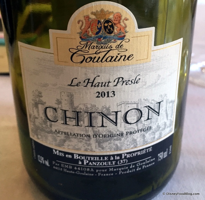 Soon, we were ready for our next course, and that meant another glass of wine. For the main dish, the pairing was Le Haut Presle Chinon.