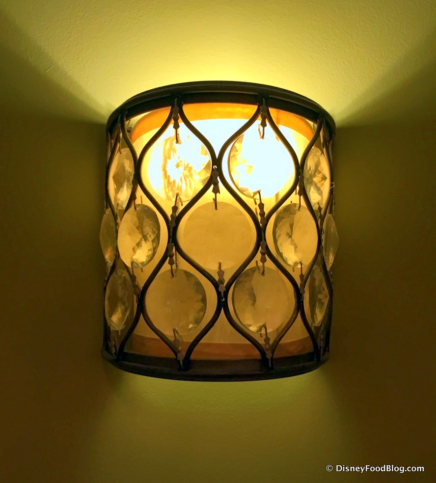 I’m always charmed by this small alcove outside of the restrooms. I can’t imagine ever needing to sit down here. But somehow, it’s comforting to know it’s there in case I have need of it. And look — more cool lights!