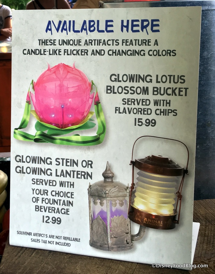 Well, at long last, it has arrived!! Complete with a carrying strap, it glows to become a luminary much like the recently added Glowing Steins. In a unique twist, the Lotus is filled with Housemade Chips at Thirsty River Bar & Trek Snacks.